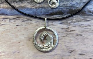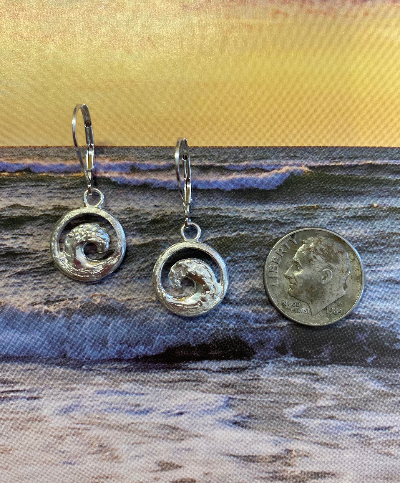 Mini O-Wave earrings are carved on both sides, and are only 1 1/8" long X about 1/2" in diameter. This pair of earrings matches the pendants that come in 3 sizes. Cast in high quality sterling silver with lever backs. $99.00